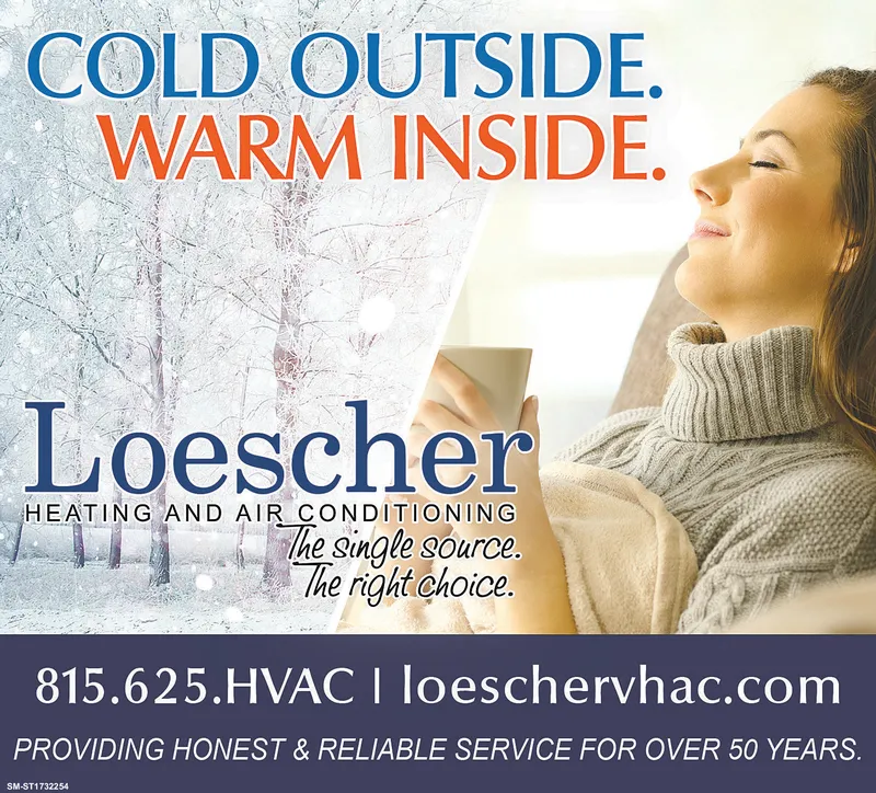 COLD OUTSIDE. WARM INSIDE. Loescher HEATING AND AIR CONDITIONING The single source. The right choice. 815.625.HVAC I loeschervhac.com PROVIDING HONEST & RELIABLE SERVICE FOR OVER 50 YEARS. SM-ST1732254 COLD OUTSIDE. WARM INSIDE. Loescher HEATING AND AIR CONDITIONING The single source. The right choice. 815.625.HVAC I loeschervhac.com PROVIDING HONEST & RELIABLE SERVICE FOR OVER 50 YEARS. SM-ST1732254